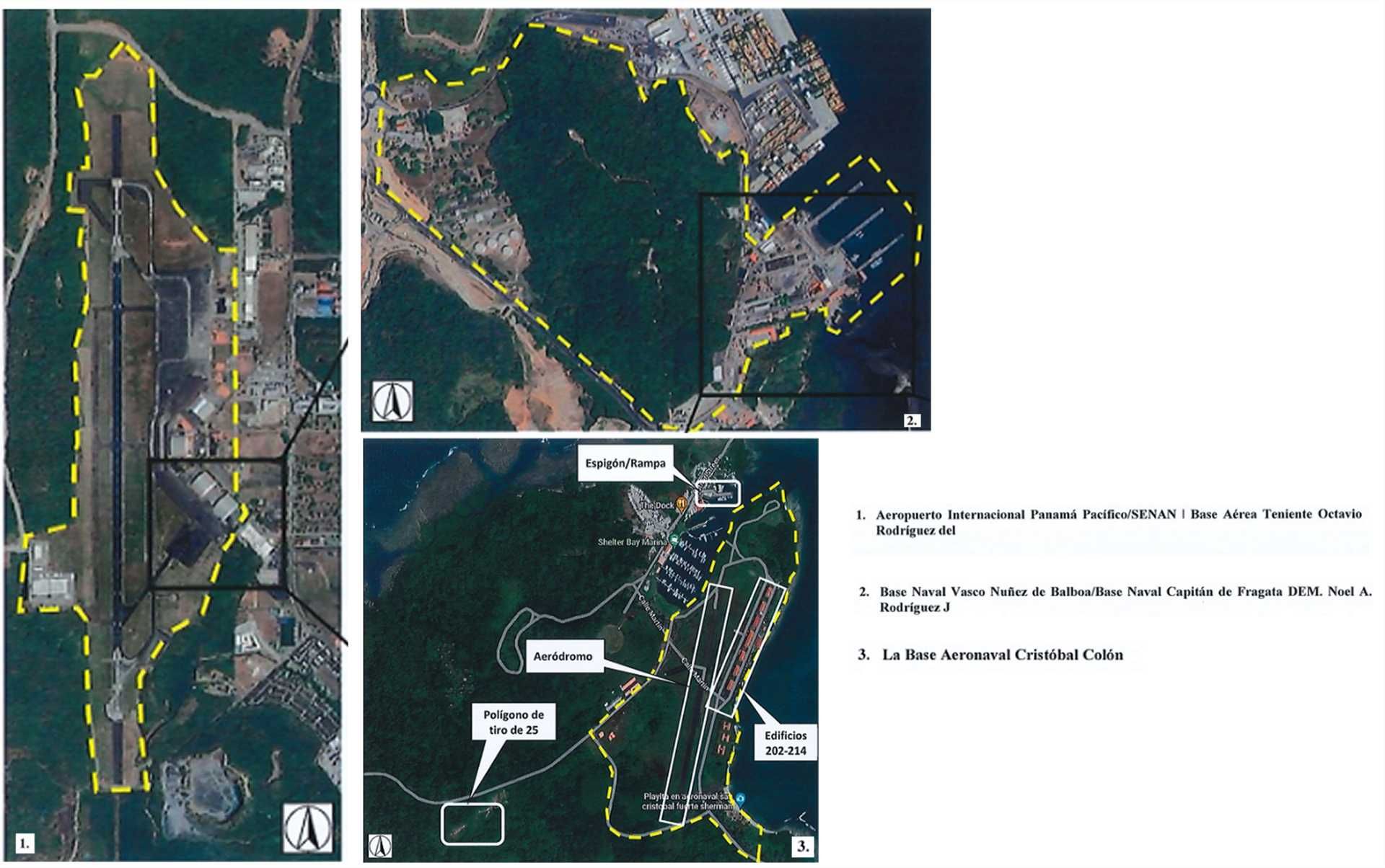 The third and final facility named is the Cristóbal Colón Naval Air Base, on the Atlantic coast near Colón. This base, a key component of SENAN's operations in the region, includes facilities such as training fields, a firing range, an aerodrome, a pier, and multiple buildings (numbered 202–214), supporting SENAN's aerial and maritime missions in Panama's northern maritime zones. According to the Annex A, the agreement includes its training fields, firing range, aerodrome, pier, and buildings 202–214.