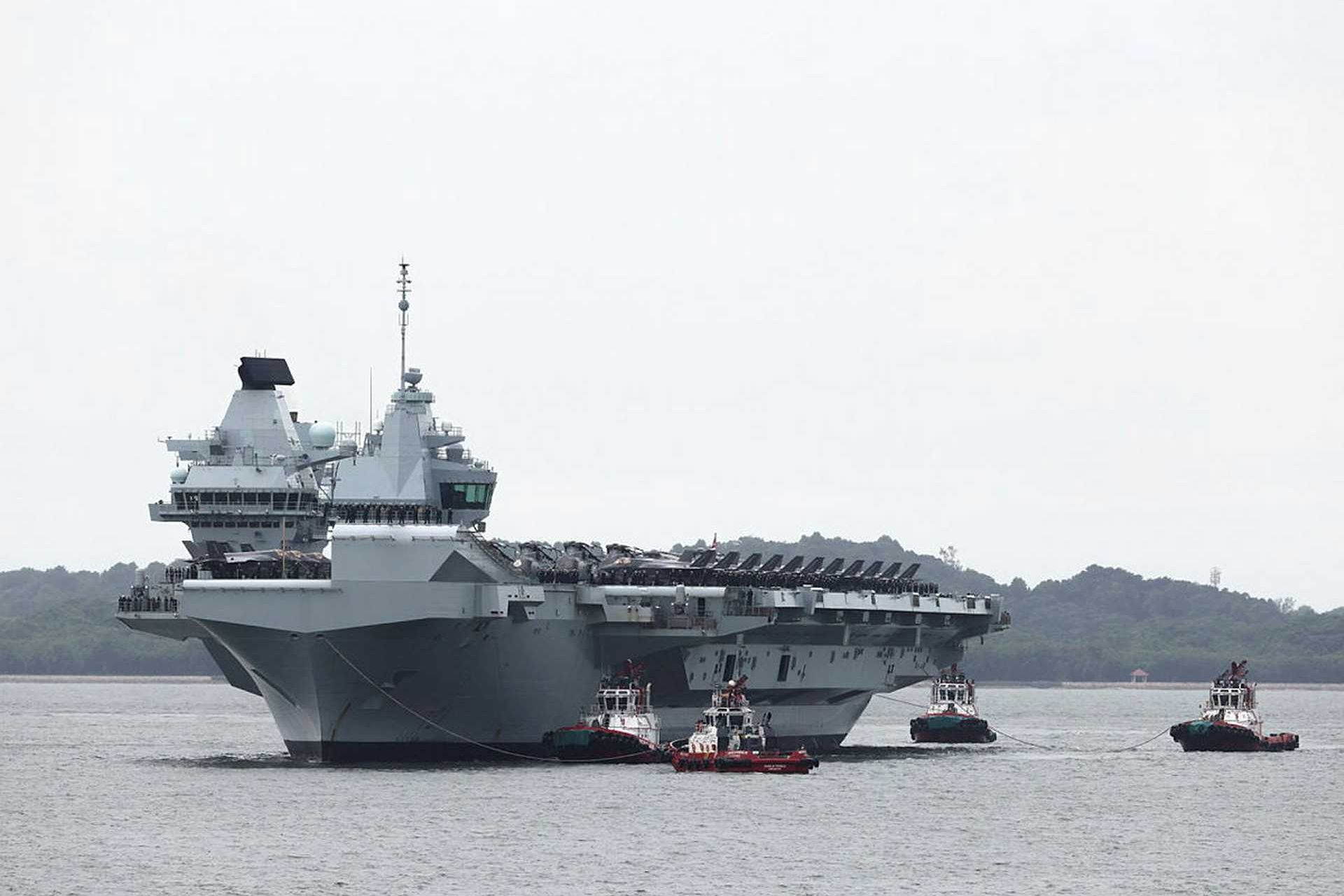 British Royal Navy HMS Prince of Wales aircraft carrier arriving in Singapore as part of a UK-led Carrier Strike Group deployment during Operation Highmast, reinforcing the UK's commitment to Indo-Pacific security.(Picture source: UK MoD)