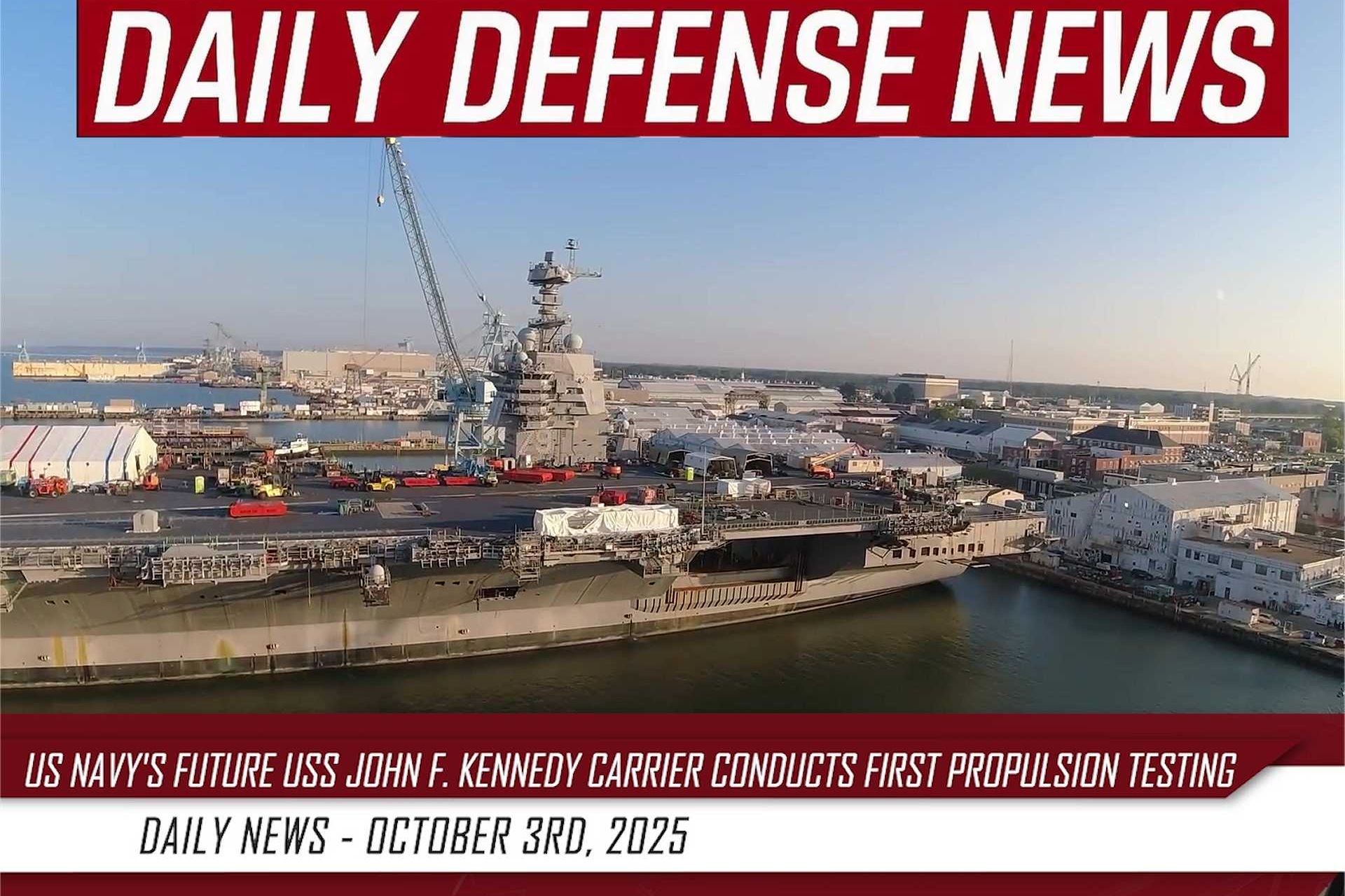 Huntington Ingalls Industries confirmed on September 29, 2025, that the future U.S. Navy USS John F. Kennedy (CVN 79) aircraft carrier successfully completed its first propulsion turn test in the James River at Newport News, Virginia. The test marked the first time the nuclear-powered aircraft carrier activated its propulsion system to maneuver in water, a major step toward the builder’s sea trials scheduled for early 2026.