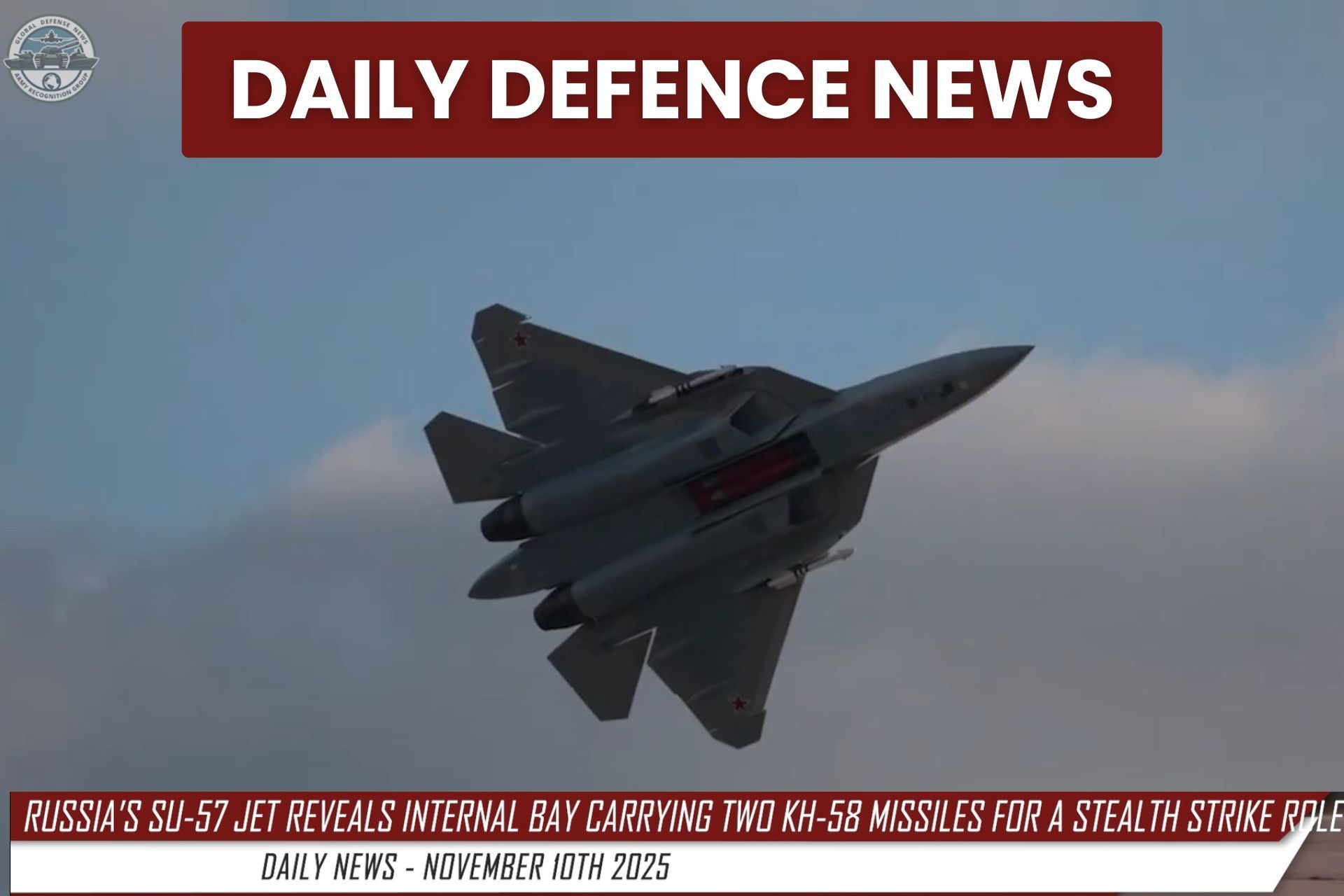 Russia’s United Aircraft Corporation published promotional footage on Nov. 9 that depicts a Su-57 opening its forward internal weapons bay to display a pair of Kh-58 family anti-radiation missiles, a configuration aimed at radar hunting in the opening stages of combat. The timing is notable, one week before Dubai Airshow 2025 in Dubai, where Russia has historically used the venue to court export interest in next-gen platforms. The new clip follows a wave of late-October imagery that for the first time showed details of the Su-57’s internal bay architecture circulating on aviation sites and pro-Kremlin social media channels.