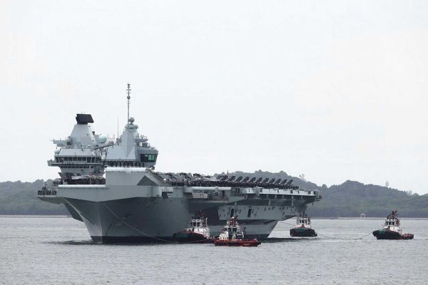 British Navy HMS Prince of Wales aircraft carrier in Singapore Shows UK Security Role in Indo-Pacific