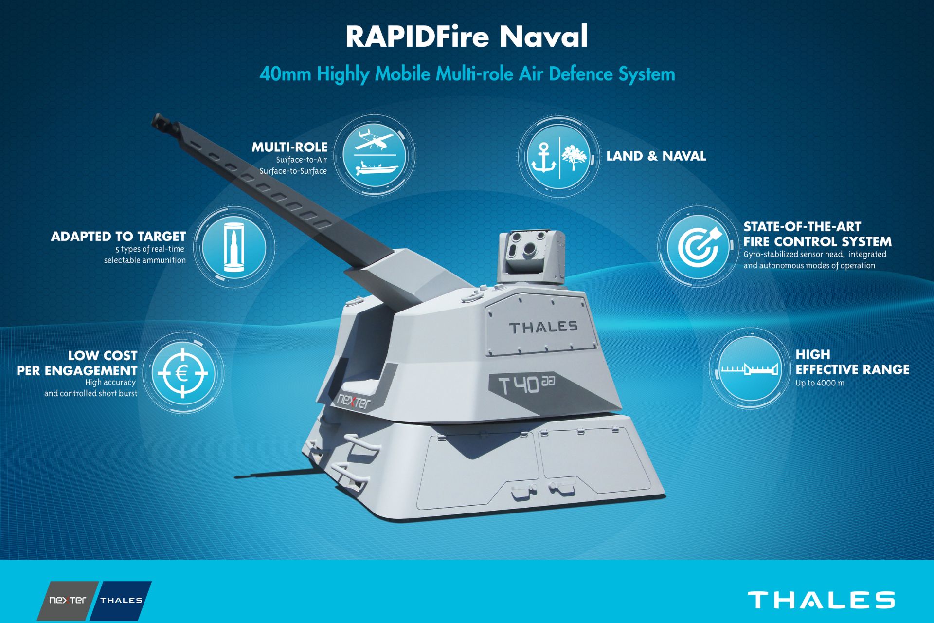 Rapid fire turret on naval configuration presented by Thales (Infography source: Thales )