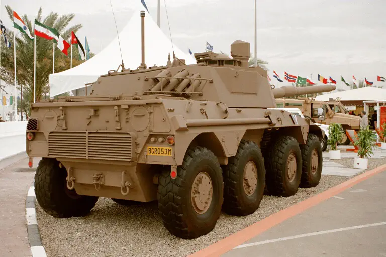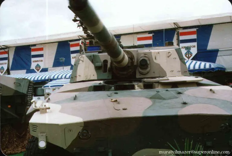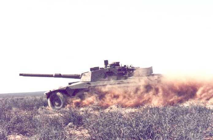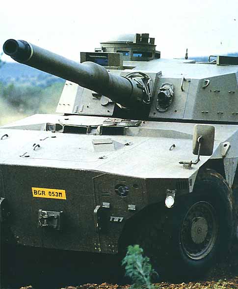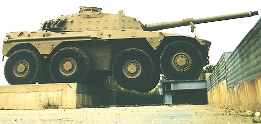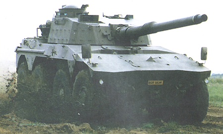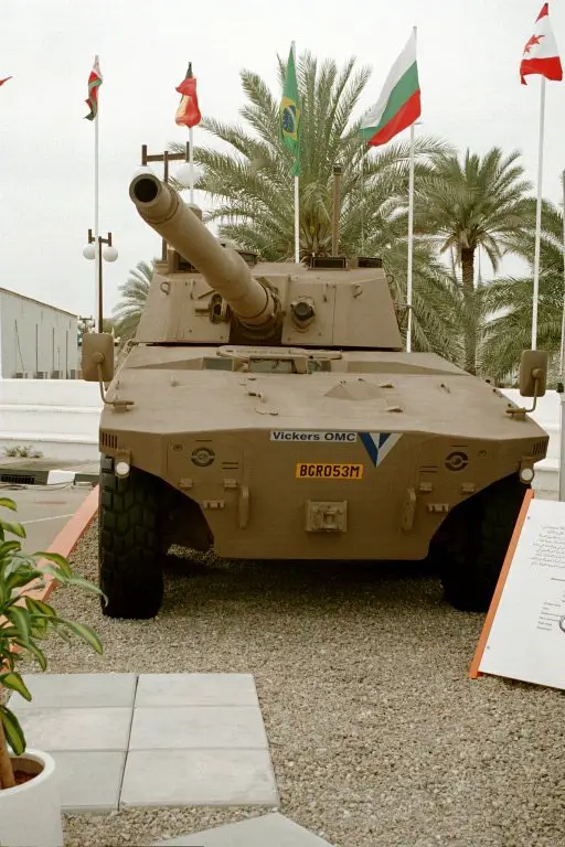 équipé d'un canon de 105 mm. Le Vickers OMC