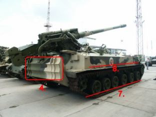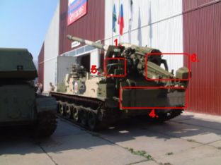 du véhicule ou au niveau du sol. Un 2S5 emporte 30 obus, les