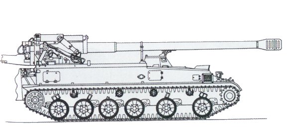 152 mm est monté à l'extérieur du véhicule et à l'arrière