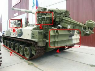 2S3. Le véhicule 2S5 a une capacité de tir nucléaire. Ce véhicule