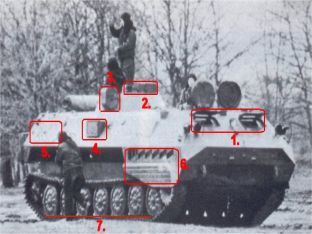 A hauteur de la tourelle, sur le flanc droit, une caisse