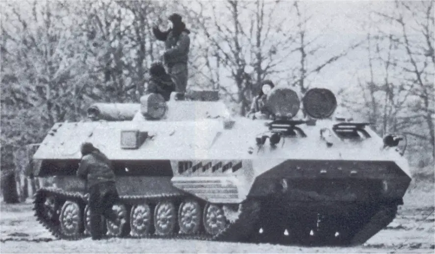 , avec l'avant fortement incliné. L'écoutille du chauffeur