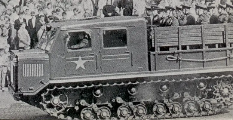 par le tracteur d'artillerie moyen à chenilles ATS-59. Outre