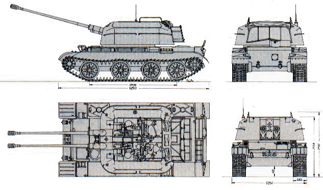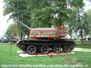 pas de rouleaux porteurs. Plus léger que le char T-54 duquel