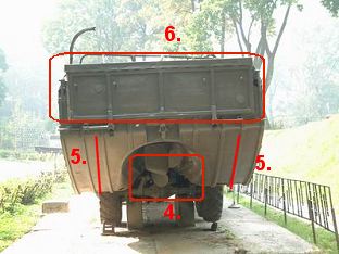 par rapport au DUKW, un hayon rabattable à l'arriière