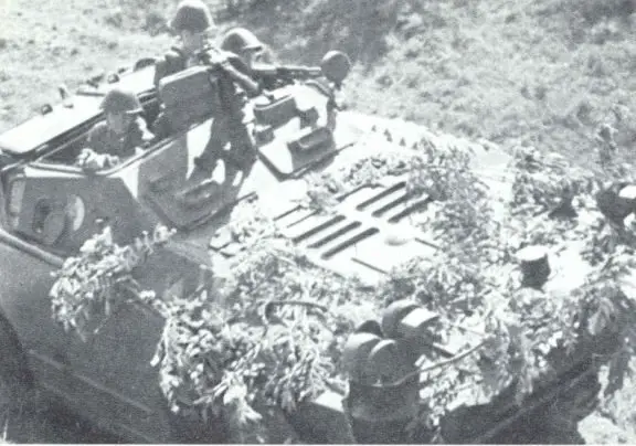 du toit on trouve une mitrailleuse de 7,62 mm. Sur la