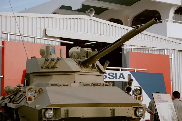 deux sens, une mitrailleuse coaxiale PKT de 7,62 mm, un lance