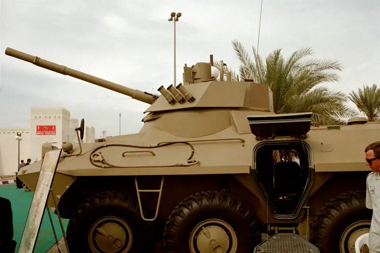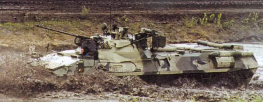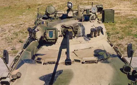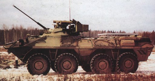 tir placées sur le flanc de la coque. Le BTR-90 est équipé