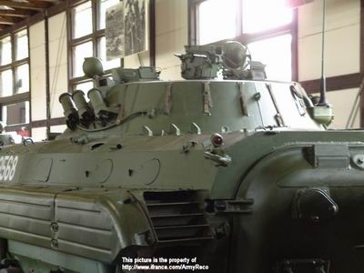 Le BMP-2 a trois lance-grenades de chaque côté de la tourelle.
