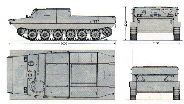 équipage, avec rampe de chargement à l'arrière BTR-50A : sans rampe de chargement BTR-50PK : avec protection de toit et système