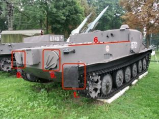 et boîtes de rangement. BTR-50PK(B) : véhicule de maintenance et amphibie,