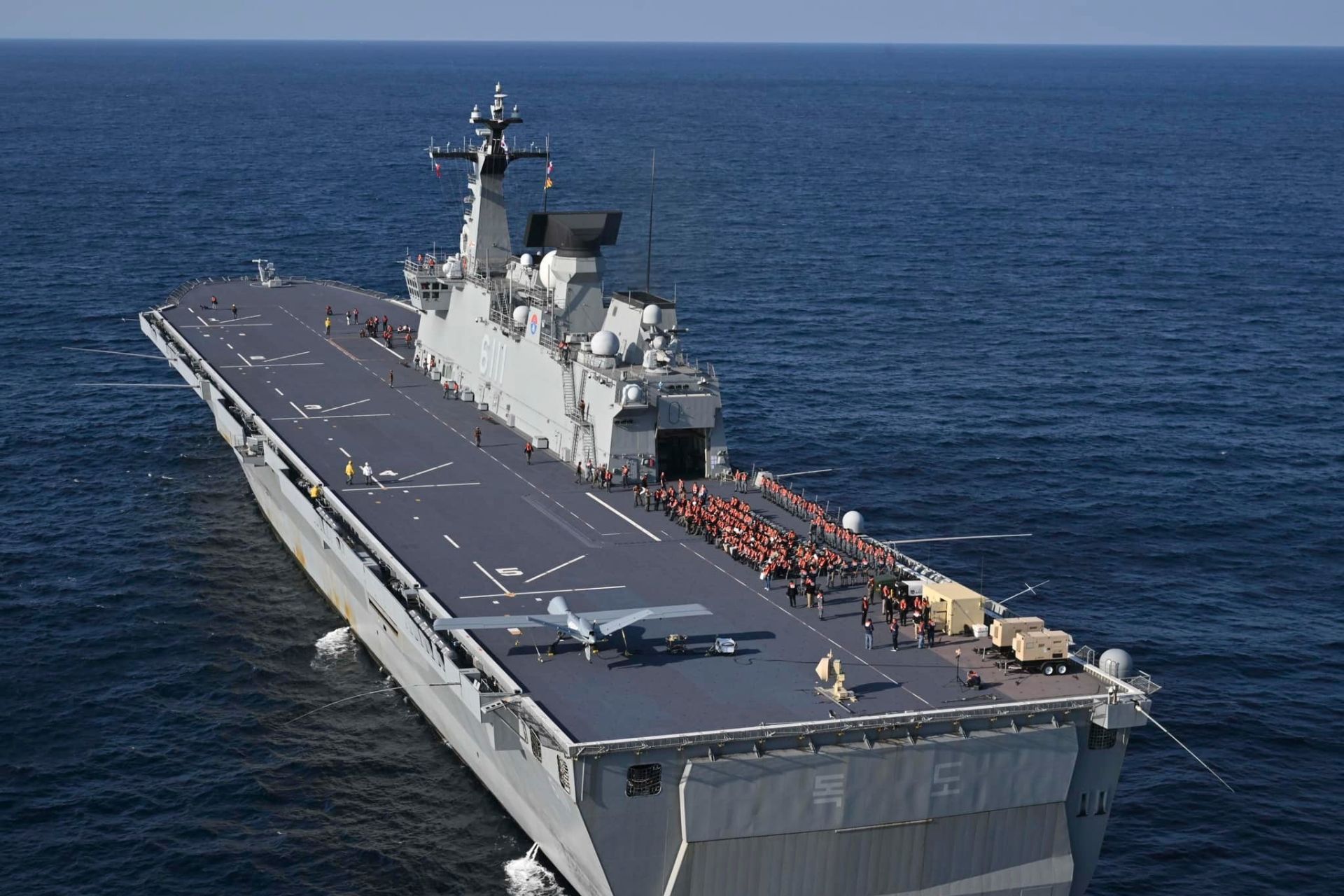 On November 12, 2024, the South Korean Navy reached a significant milestone with the first flight of a Gray Eagle STOL drone from a naval vessel, the ROKS Dokdo, to a land base. This mission, conducted in collaboration with General Atomics Aeronautical Systems, Inc. (GA-ASI) and Hanwha Aerospace, demonstrated the versatility of the Gray Eagle STOL, capable of taking off from an amphibious ship and landing on a land runway. The drone launched from the deck of the amphibious landing ship ROKS Dokdo (LPH-6111), located off Pohang, South Korea, and concluded its mission with a successful landing at Pohang Naval Air Base, validating its operational capabilities in a military context and expanding the strategic options of the South Korean Navy.