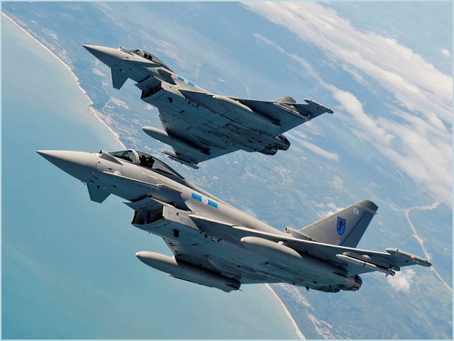 ![]() 6 Squadron Eurofighter Typhoons on Exercise Bersama Lima in Malaysia [British MOD Picture: Geoffrey Lee, Planefocus Limited 2011] |