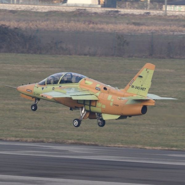The first M-345 HET (High Efficiency Trainer) production basic/advanced trainer aircraft successfully performed its maiden flight at Venegono Super...