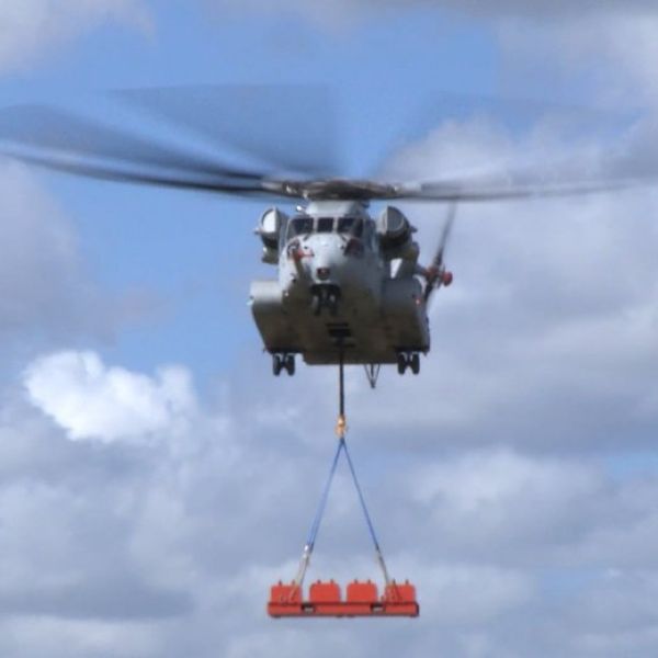 The CH-53K lifted the external load of 36,000 lbs. into a hover followed by flight demonstrating satisfactory handling qualities and structural mar...