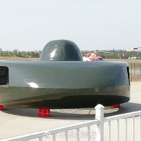 A mock-up of a strange, flying saucer-like armed helicopter was displayed at the China Helicopter Exposition in Tianjin on October 10.