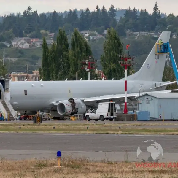The first P-8A Poseidon maritime patrol aircraft of the Royal Air Force (RAF) has been painted in RAF colours and is now undergoing pre-flight prep...