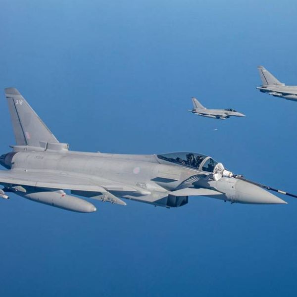 According to information published by the British Royal Air Force on June 28, 2020, Typhoon fighter aircraft from British RAF (Royal Air Force) Con...