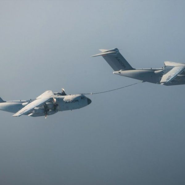 Successful in-flight refueling between two French Airbus A400M Atlas