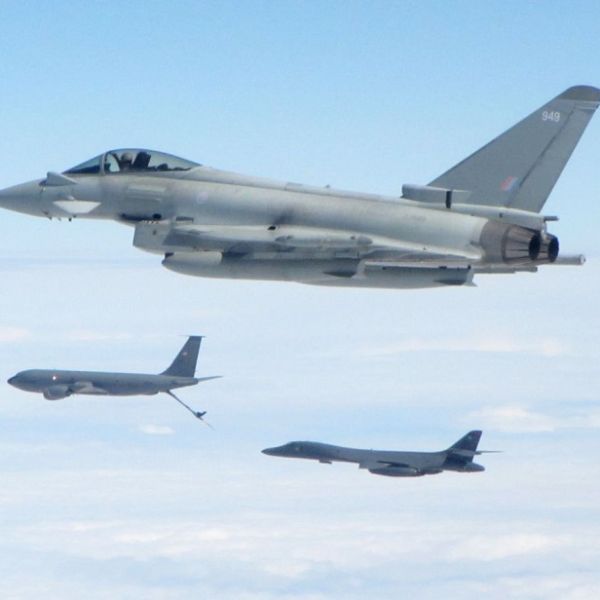 Royal Air Force Typhoons carry out exercise with US B1 bomber