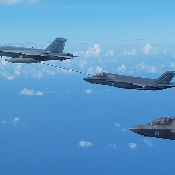 F-35B Lightnings from 617 Squadron have conducted Air-to-Air Refuelling from a US Navy F/A-18E Super Hornet for the first time. The 617 Squadr...