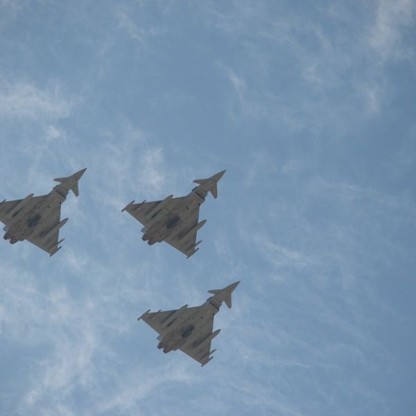 Three Royal Air Force (RAF) Typhoons have flown in the Qatar National Day fly past over Doha on December 18 alongside aircraft from the Qatar Emiri...