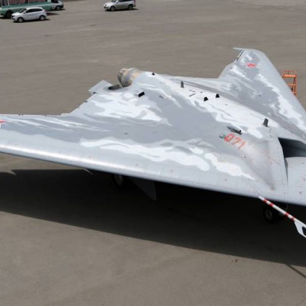 Russian strategic S-70B Okhotnik UAV fires air-to-ground guided missiles