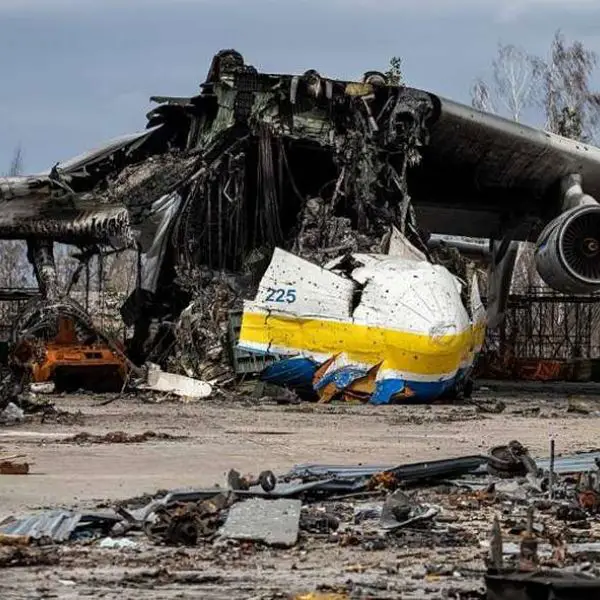 Ukrainians remove surviving parts of Antonov An-225 Mriya destroyed at Gostomel airport in February 2022