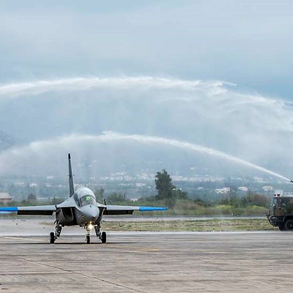The first two new Leonardo M-346 Master training and light attack aircraft were welcomed by representatives of the Greek Government and the Ministr...