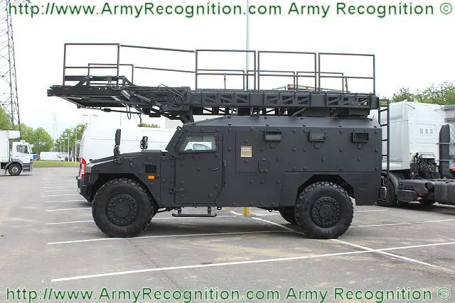 Renault Trucks Security Sherpa armoured vehicle with Assault ladder. |