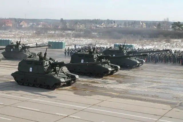 ![]() 2S19 MSTA-S at rehearsal for the Victory Day parade 2014. |