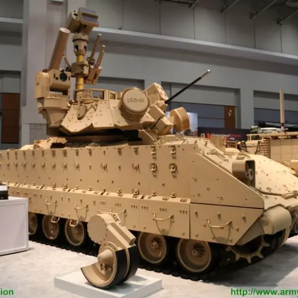 BAE Systems showcases new M-SHORAD (Mobile Short-Range Air Defence) solution mounted on Bradley M2A3 tracked armoured IFV (Infantry Fighting Vehicl...
