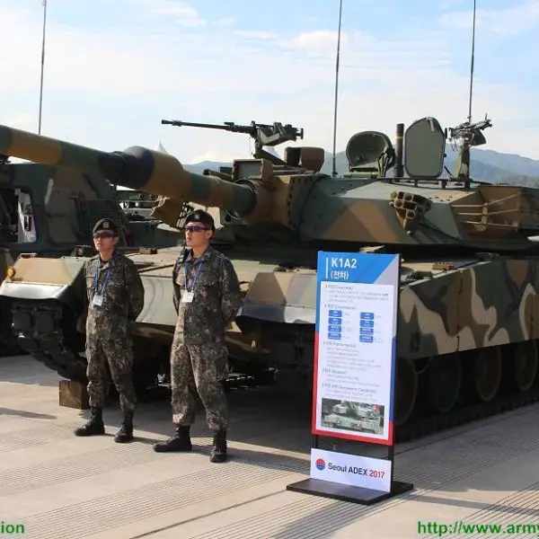 South Korean Army presents latest version of its K1 Main Battle Tank (MBT), the K1A2 at ADEX 2017, the Seoul International Aerospace & Defense ...