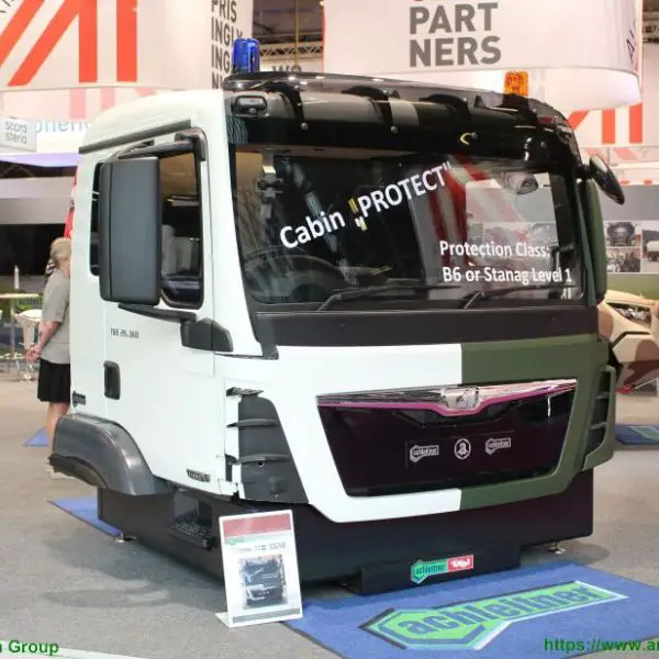 At Eurosatory 2018, held from 11-15 June in Paris, Austrian company Achleitner presents its "Protect" cabin which combines "normal" civilian look w...