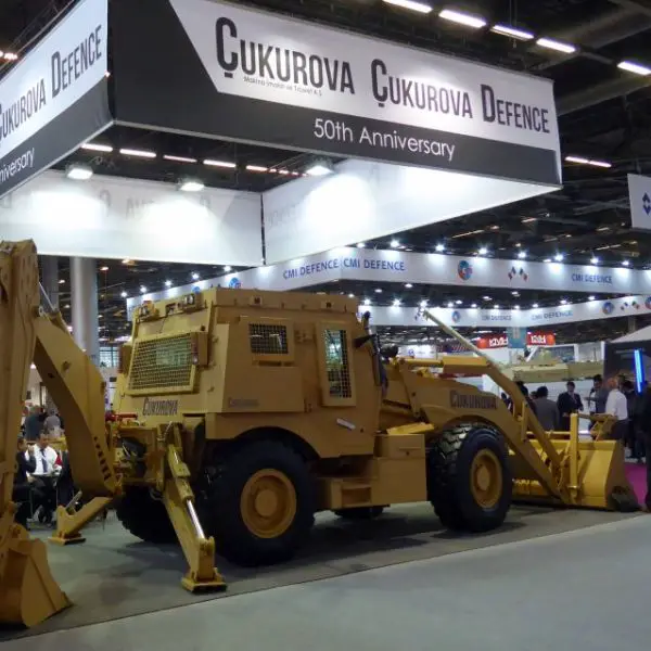 Eurosatory 2018: Turkish company Cukurova Defence displays 4x4x4 armored backhoe loader