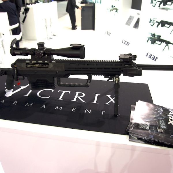 Victrix Armaments, a BDT Group company, showcases at Eurosatory 2018 the Corvus long-range sniper rifle. It is is a .50 BMG calibre. (12,7x99) weap...