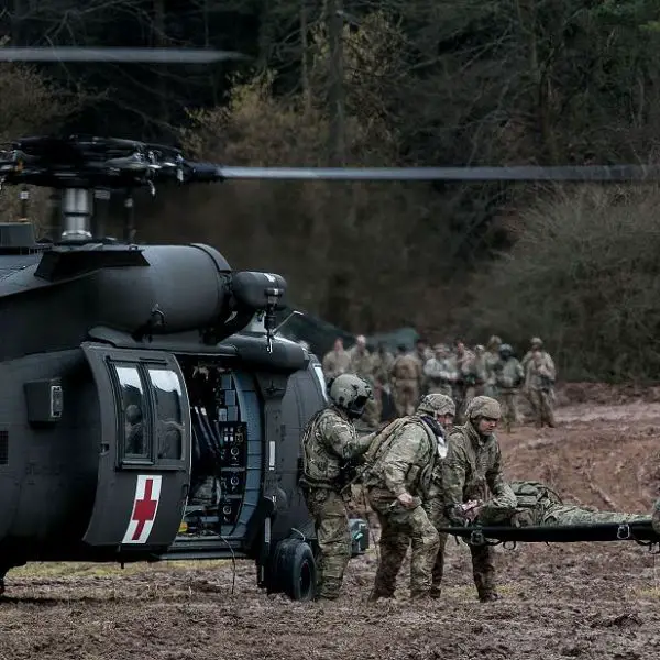 U.S. army medics from the 557th Medical Company conduct rapid medical evacuation training during exercise Allied Spirit VIII at the Joint Multinati...