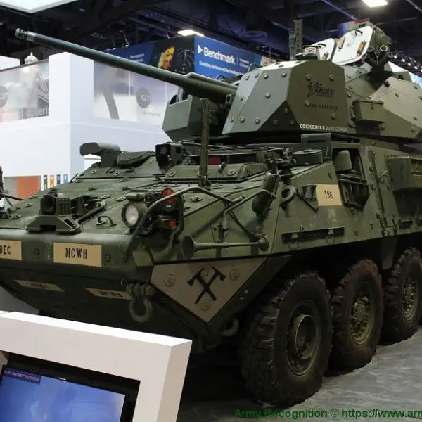 AUSA 2018: CMI Defence ARDEC Cockerill 3030 CRADA 30mm weapon station on Stryker armored