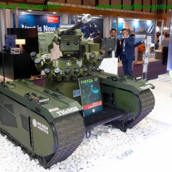 FEINDEF 2019: Escribano Mechanical and Engineering displays Guardian 2.0 RCWS on MILREM THeMIS UGV