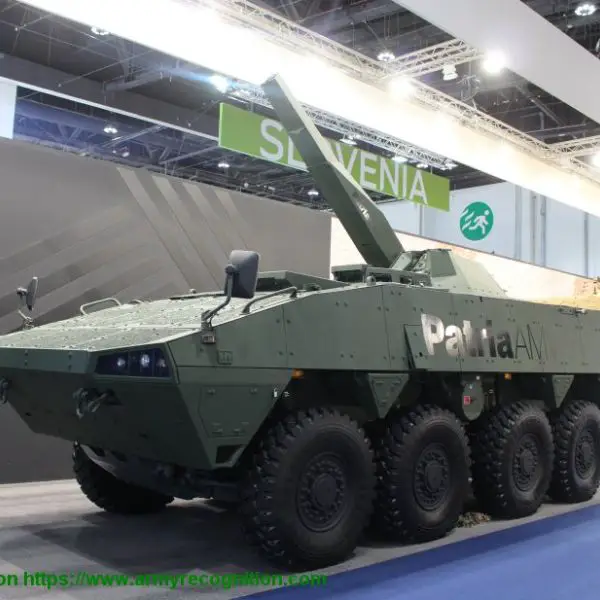 At IDEX 2019, Patria showcases Patria AMV 8x8 armed with Patria Nemo 120 mm mortar system turret equipped with 120 mm smoothbore mortar and Fire Ma...
