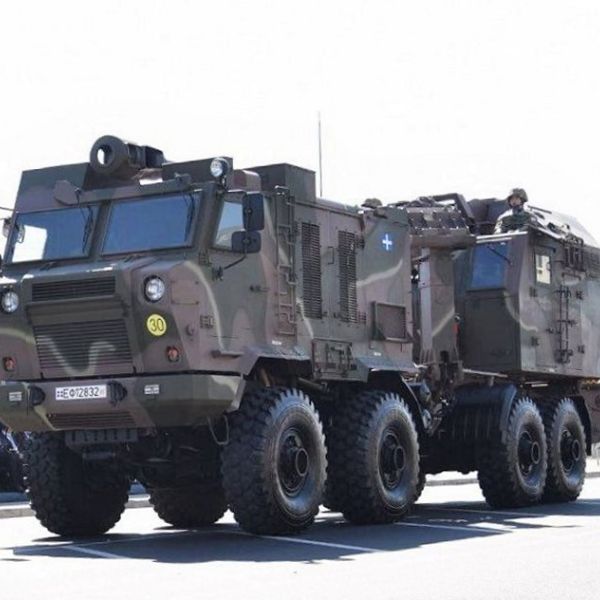 Serbian made Nora-B52 self-propelled howitzers and Milos armored vehicles parade in Cyprus