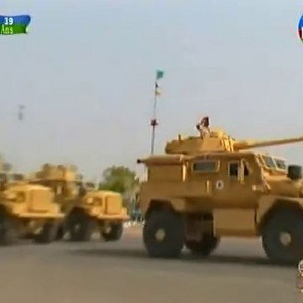 French AML 90 turret on U.S. Cougar MRAP in Djibouti military parade