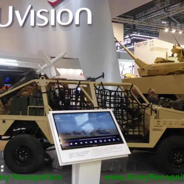 DSEI 2019: UVision presents Hero loitering munitions mounted on EINSA Neton tactical vehicle