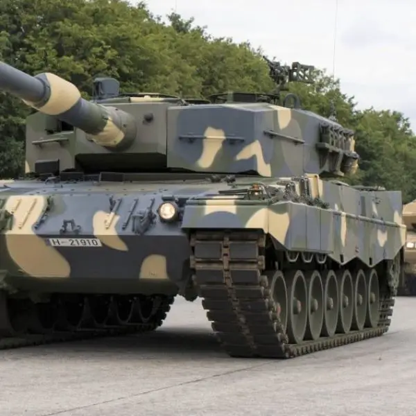 The first German Leopard 2A4 main battle tanks refurbished and upgraded for the Hungarian army have been displayed by KMW in Munich, Germany, Defen...